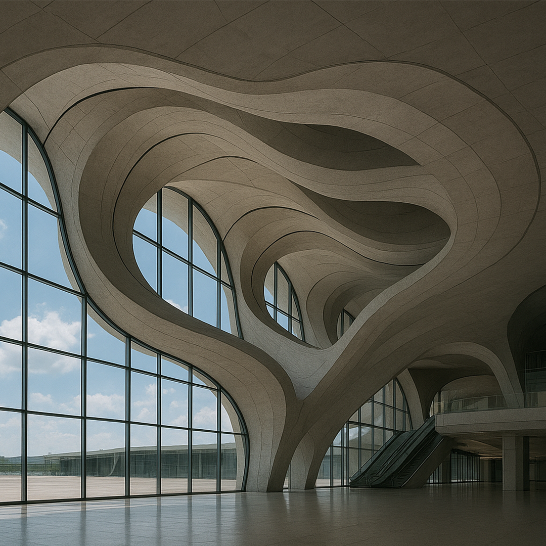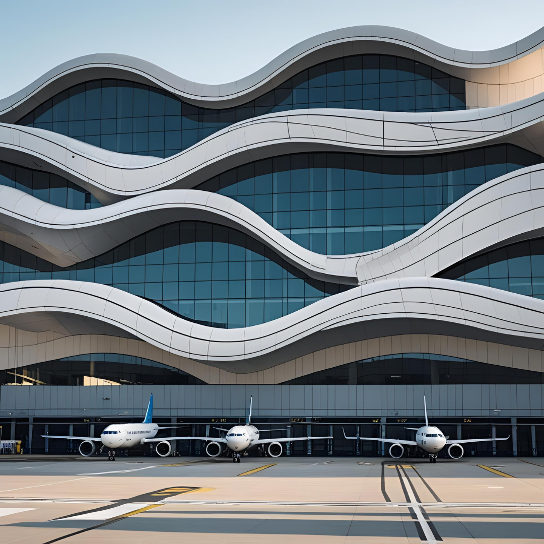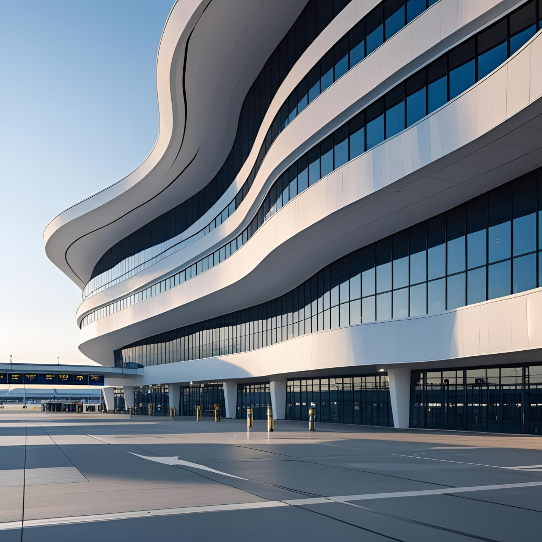 “An iconic airport terminal where fluid architecture, light, and movement shape the future of air travel.”